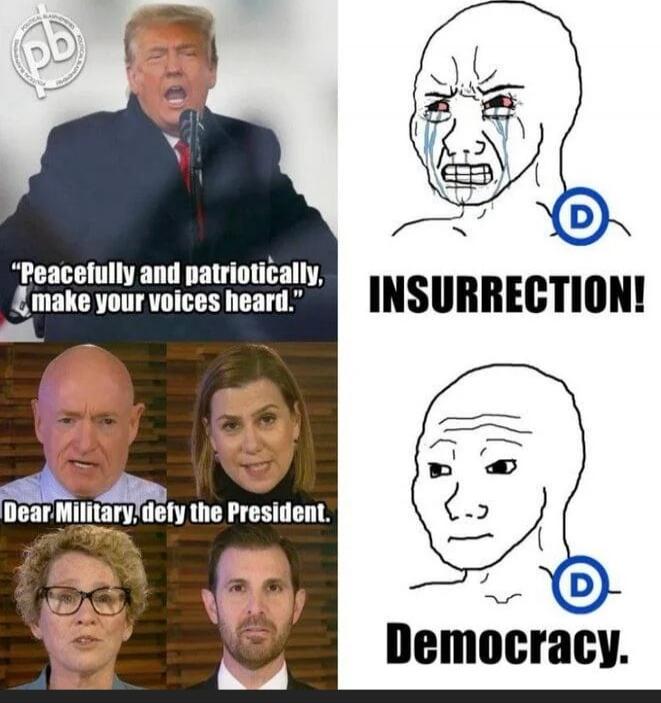 "Peacefully and patriotically, make your voices heard." Dear Military, defy the President. INSURRECTION! Democracy.