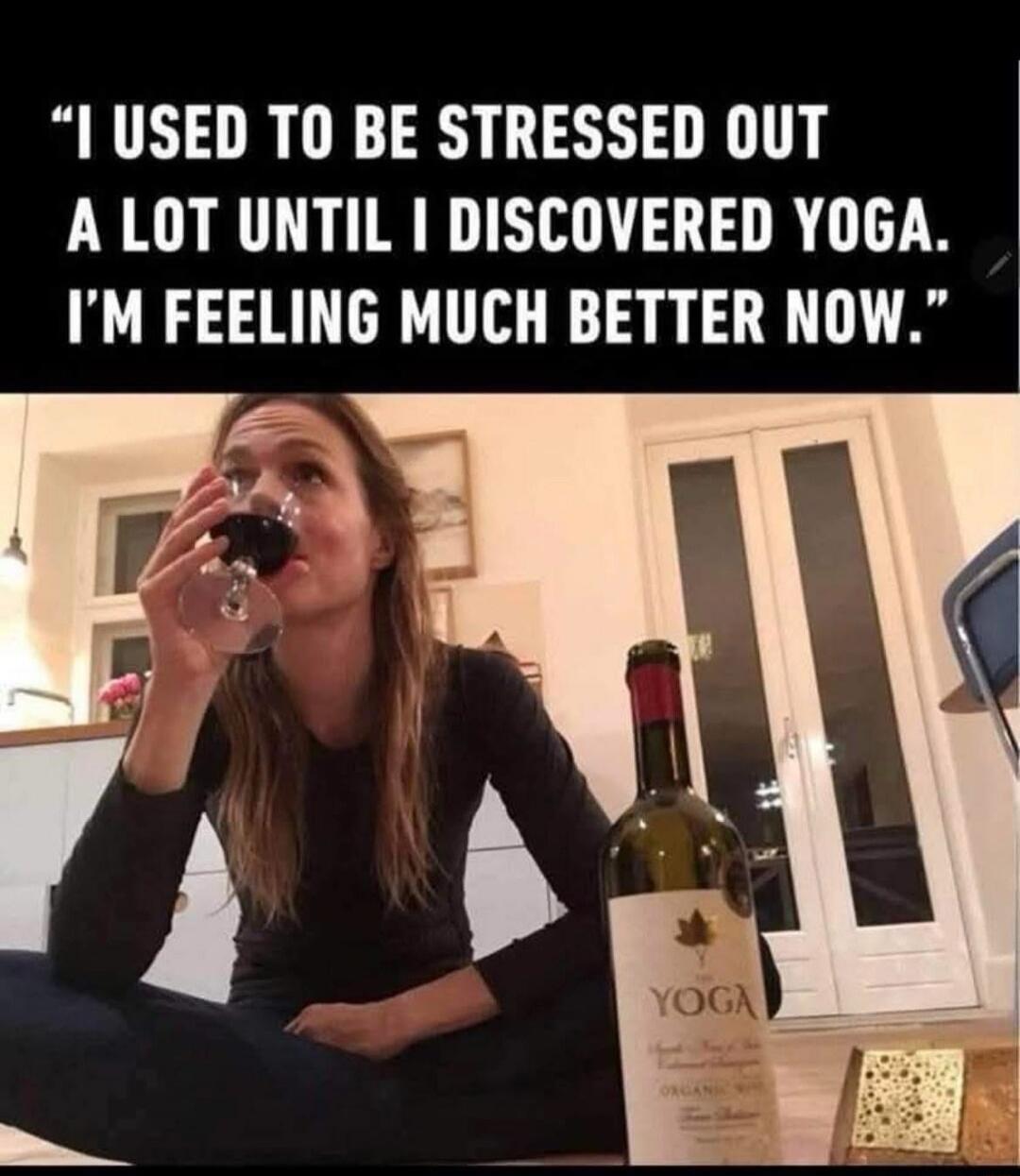 "I USED TO BE STRESSED OUT A LOT UNTIL I DISCOVERED YOGA. I'M FEELING MUCH BETTER NOW."
