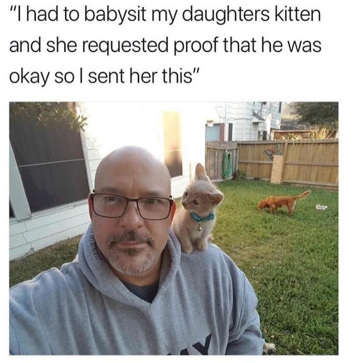 "I had to babysit my daughters kitten and she requested proof that he was okay so I sent her this"