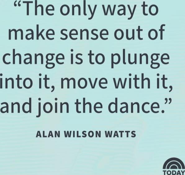 "The only way to make sense out of change is to plunge into it, move with it, and join the dance." ALAN WILSON WATTS