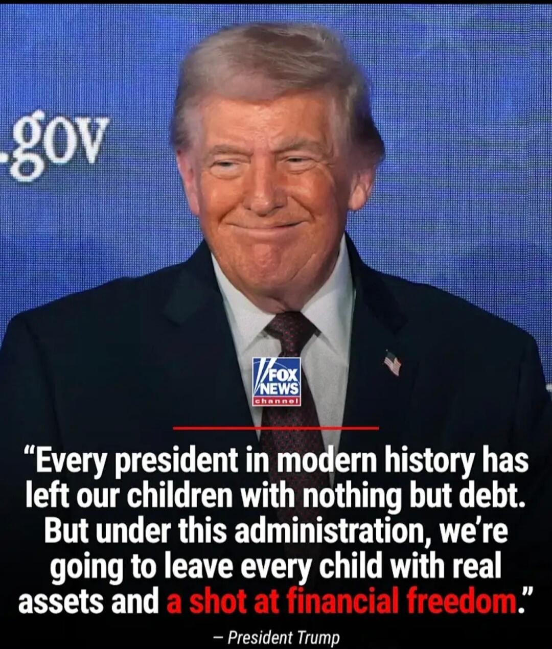 "Every president in modern history has left our children with nothing but debt. But under this administration, we’re going to leave every child with real assets and a shot at financial freedom." – President Trump