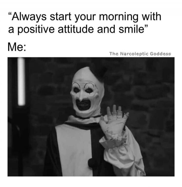 "Always start your morning with a positive attitude and smile" Me: