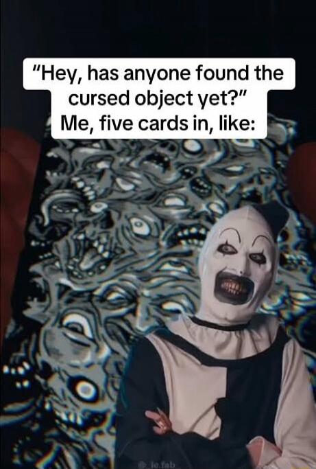 "Hey, has anyone found the cursed object yet? Me, five cards in, like:"