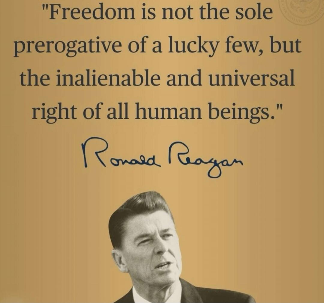 "Freedom is not the sole prerogative of a lucky few, but the inalienable and universal right of all human beings." Ronald Reagan