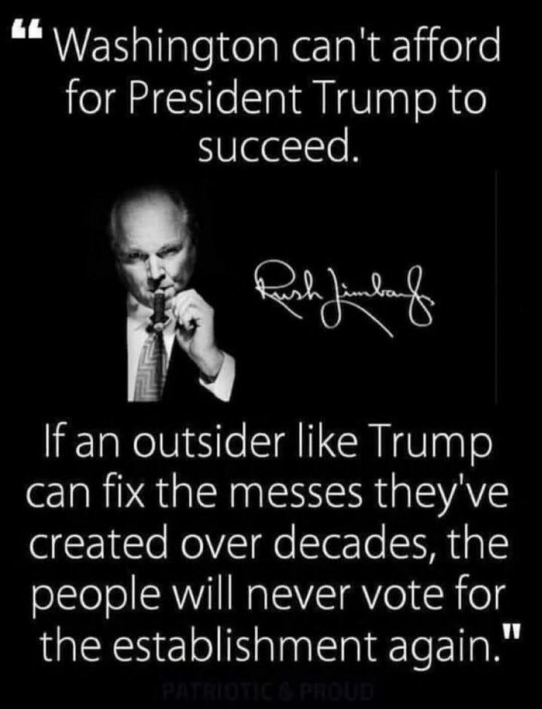 "Washington can't afford for President Trump to succeed. If an outsider like Trump can fix the messes they've created over decades, the people will never vote for the establishment again."