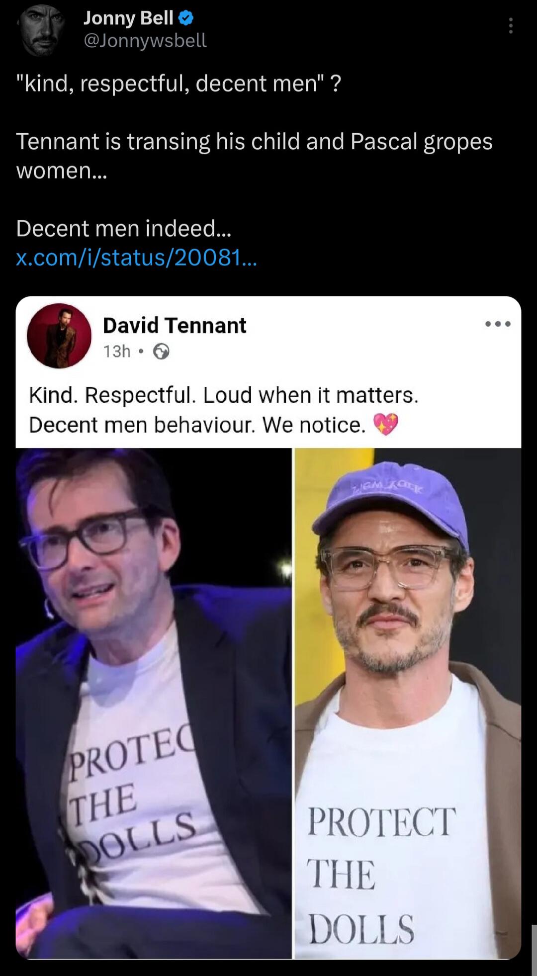 Tennant is transing his child and Pascal gropes women...