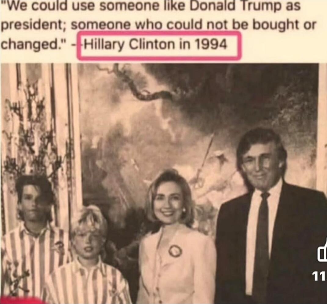 "We could use someone like Donald Trump as president; someone who could not be bought or changed." - Hillary Clinton in 1994