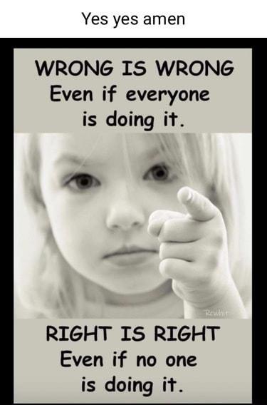 Yes yes amen WRONG IS WRONG Even if everyone is doing it N RIGHT IS RIGHT Even if no one is doing it