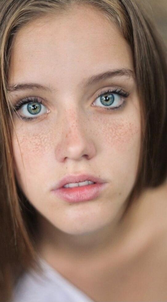 A close-up portrait of a young woman with long wavy hair, subtle makeup, pink lips, and a soft expression.