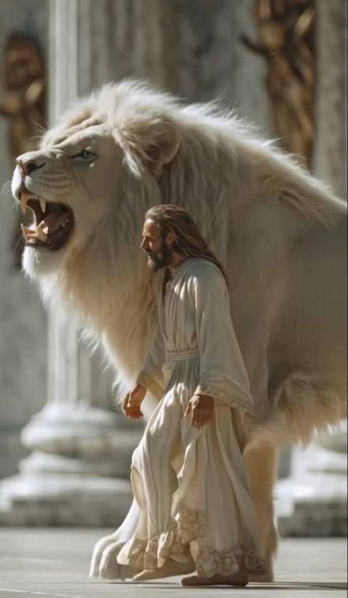 A biblical scene: Jesus stands at the stern of a wooden boat with outstretched arms, surrounded by several disciples as a gigantic, crushing wave looms overhead. The stormy sea roars around them, with dark swirling water and white-crested surf.