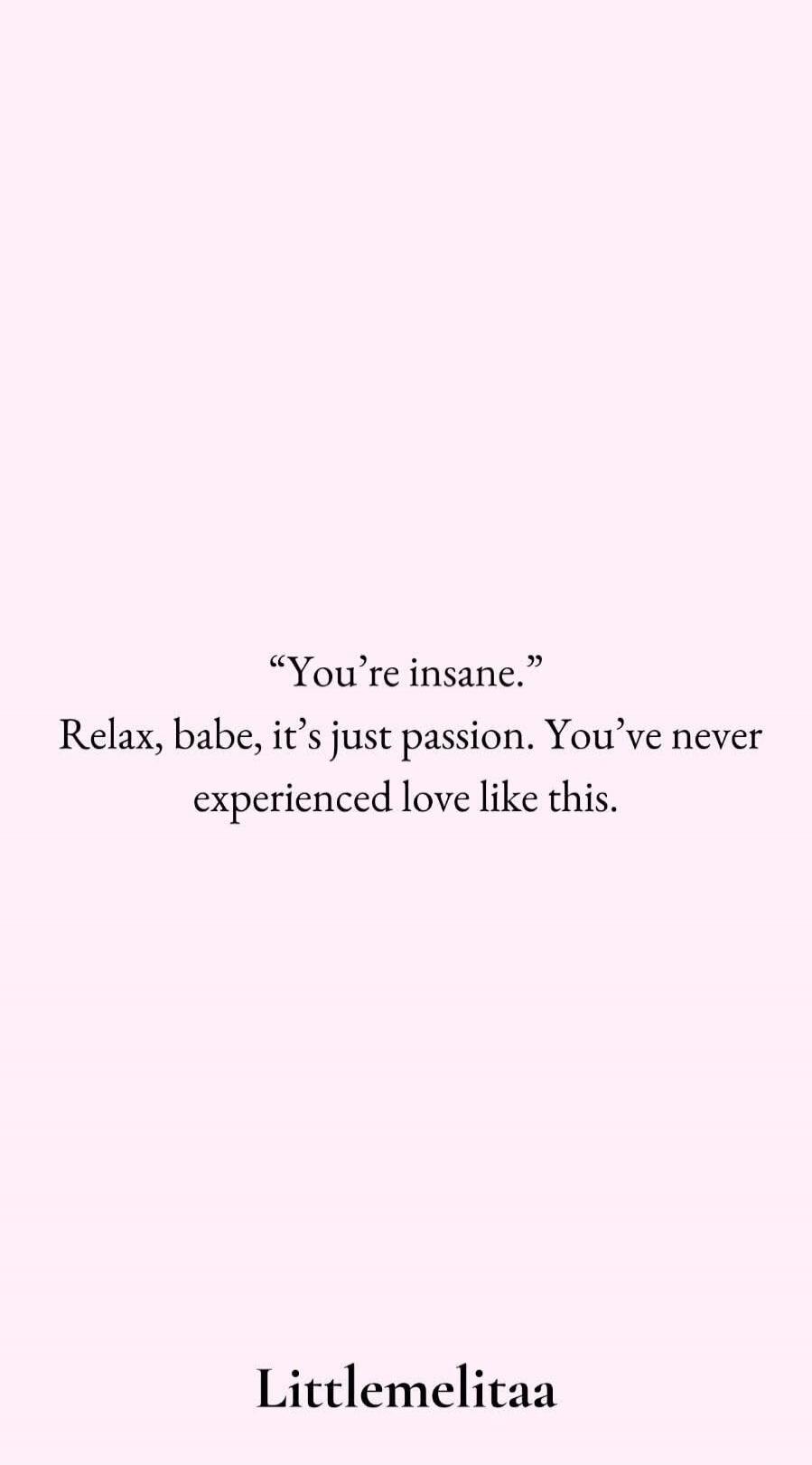 "You're insane." Relax, babe, it's just passion. You've never experienced love like this. Littlemelitaa