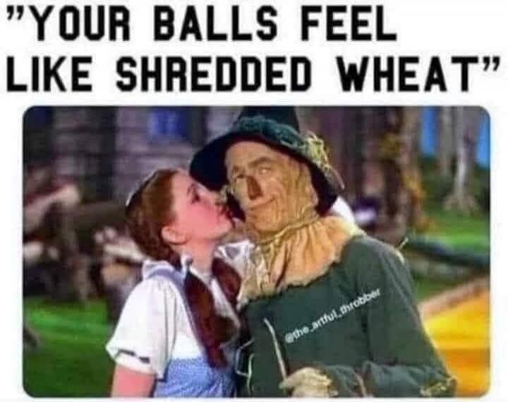 "YOUR BALLS FEEL LIKE SHREDDED WHEAT"