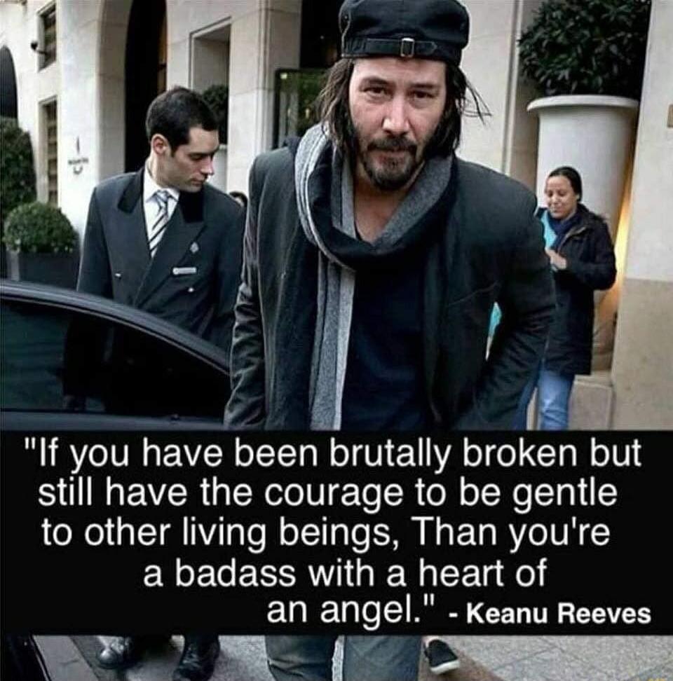 "If you have been brutally broken but still have the courage to be gentle to other living beings, Than you're a badass with a heart of an angel." - Keanu Reeves