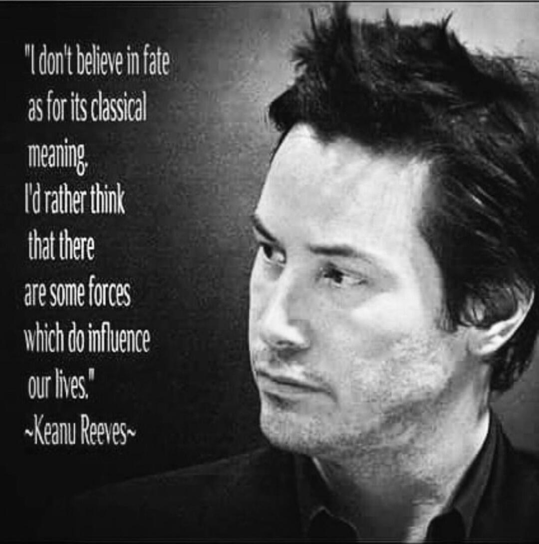 "I don't believe in fate as for its classical meaning I'd rather think that there are some forces which do influence our lives." ~Keanu Reeves~