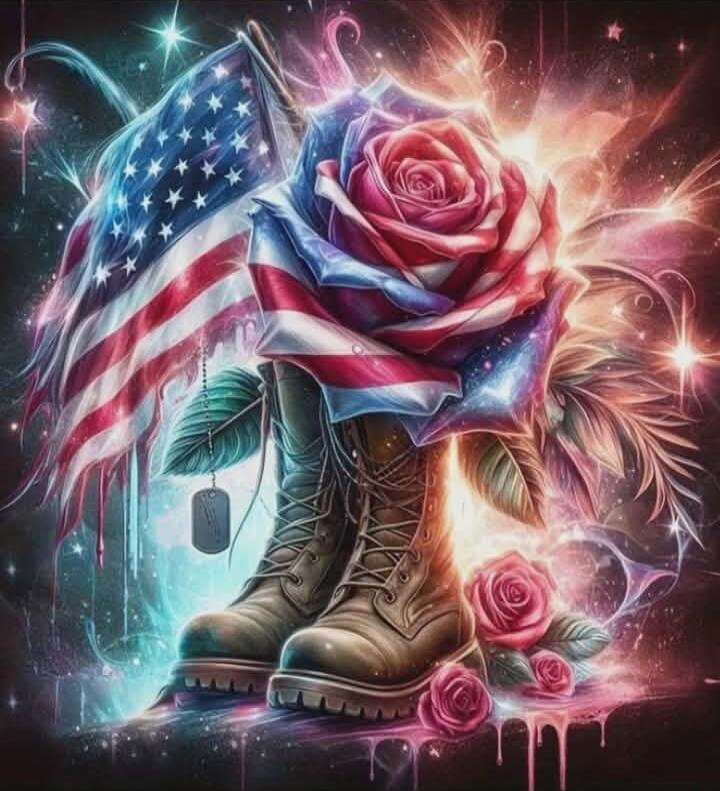 American flag background with three wolves standing in tall grass.