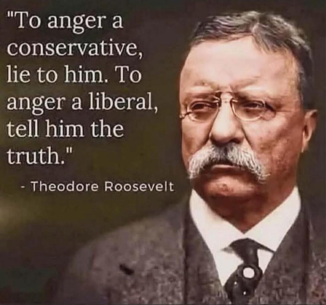 "To anger a conservative, lie to him. To anger a liberal, tell him the truth." - Theodore Roosevelt