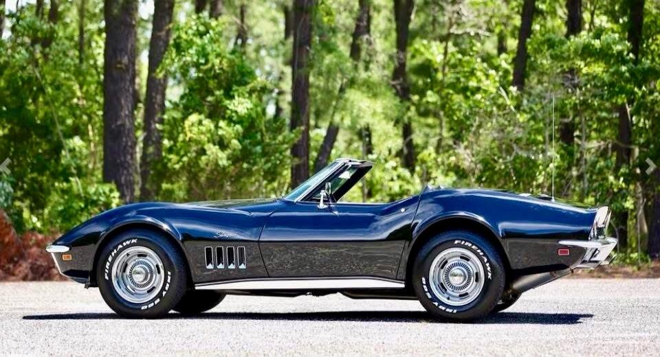 Classic red vintage car (1950s) with chrome details and whitewall tires.