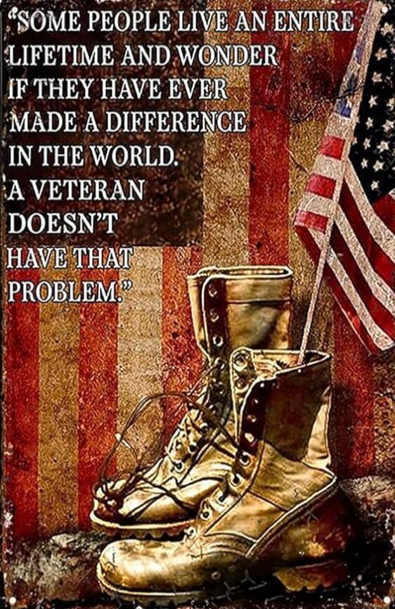"Some people live an entire lifetime and wonder if they have ever made a difference in the world. A veteran doesn't have that problem."