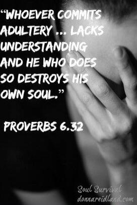 "Whoever commits adultery ... lacks understanding and he who does so destroys his own soul." Proverbs 6:32