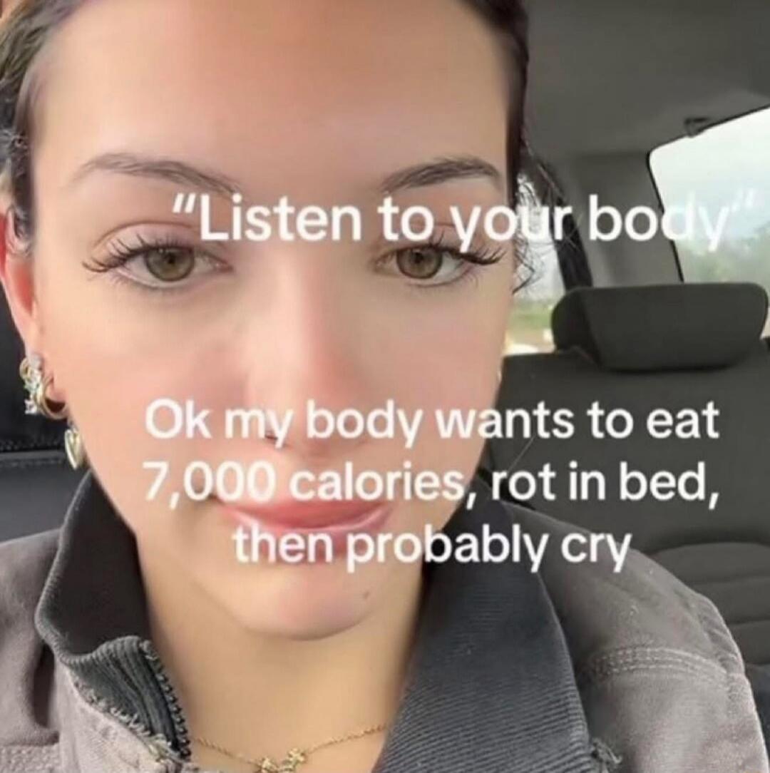 "Listen to your body" Ok my body wants to eat 7,000 calories, rot in bed, then probably cry