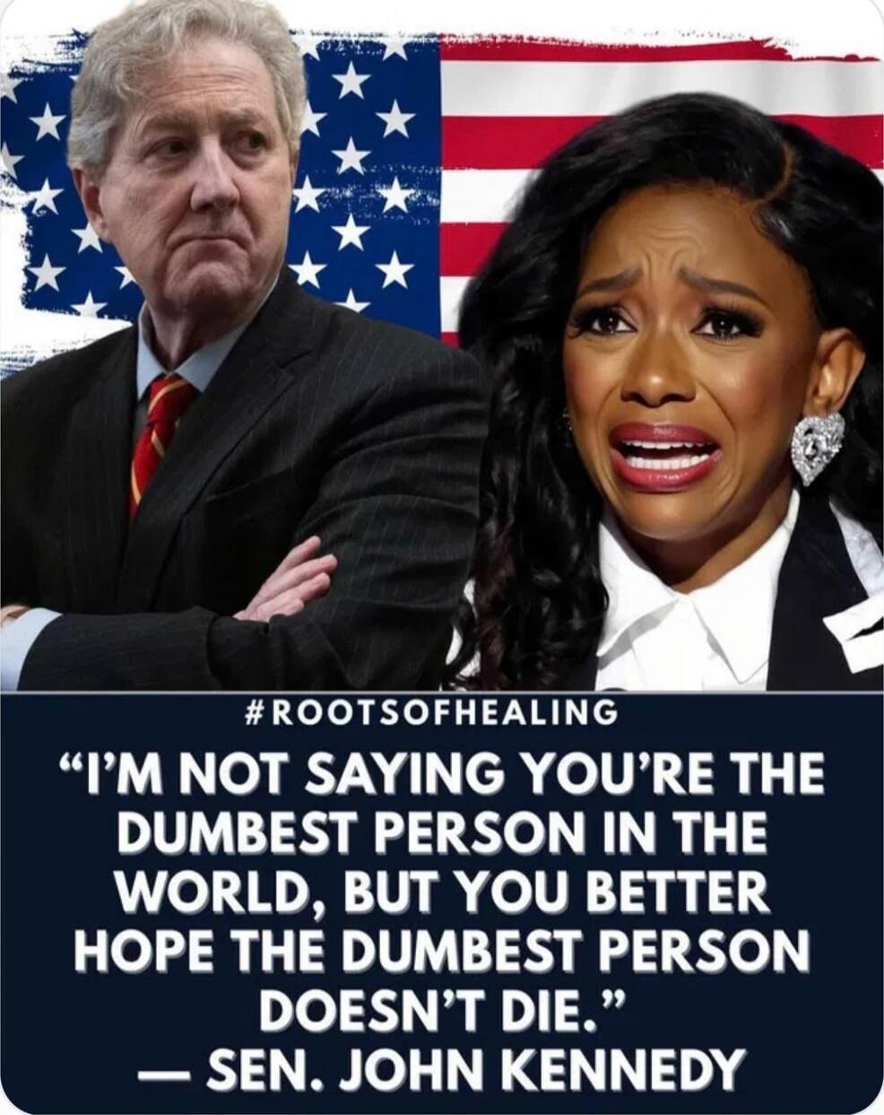 "#ROOTSOFHEALING" "I'M NOT SAYING YOU’RE THE DUMBEST PERSON IN THE WORLD, BUT YOU BETTER HOPE THE DUMBEST PERSON DOESN'T DIE." — SEN. JOHN KENNEDY