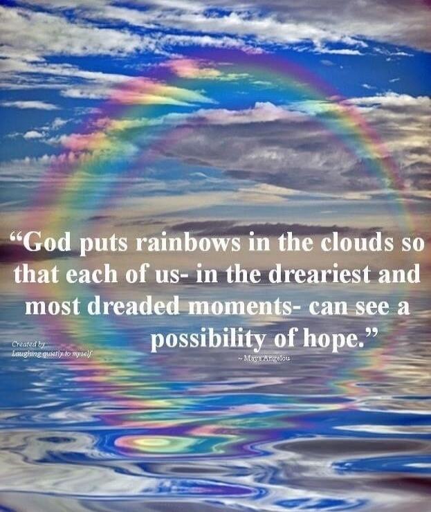 "God puts rainbows in the clouds so that each of us- in the drearest and most dreaded moments- can see a possibility of hope."