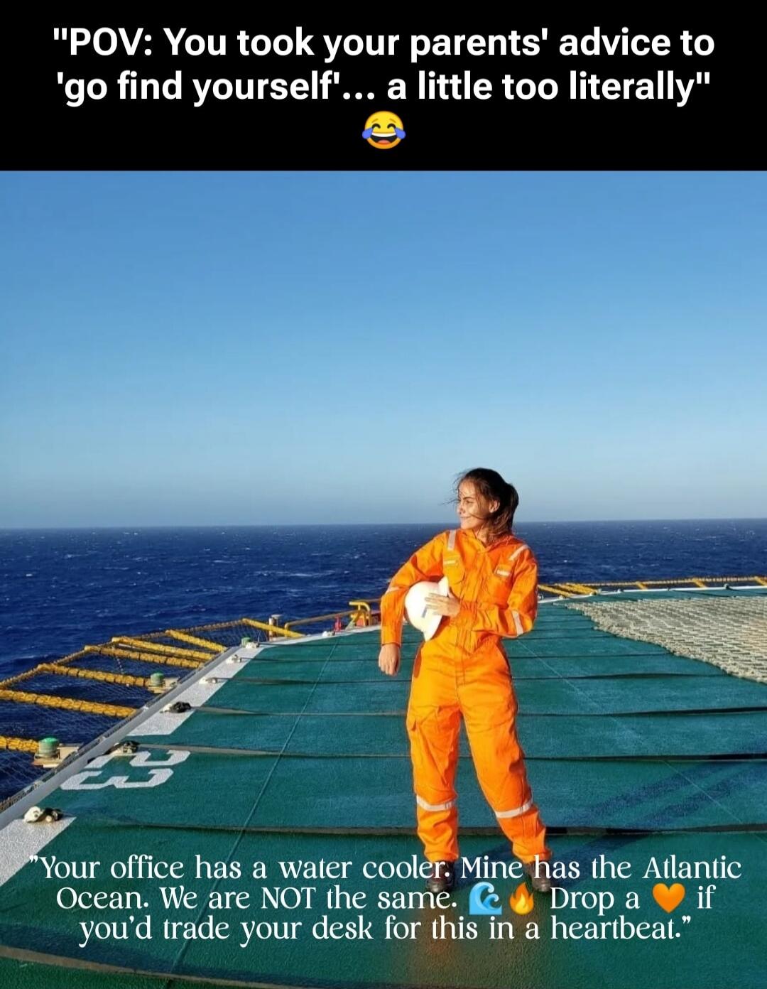 "POV: You took your parents' advice to 'go find yourself'... a little too literally" "Your office has a water cooler. Mine has the Atlantic Ocean. We are NOT the same. ๐ŸŒŠ๐Ÿ”ฅ Drop a ๐Ÿงก if you'd trade your desk for this in a heartbeat."