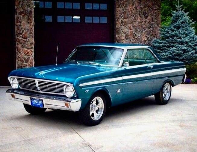 Blue Plymouth Barracuda muscle car.