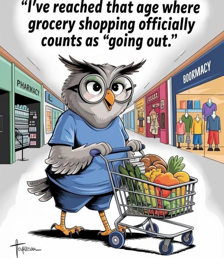 "I've reached that age where grocery shopping officially counts as 'going out'."