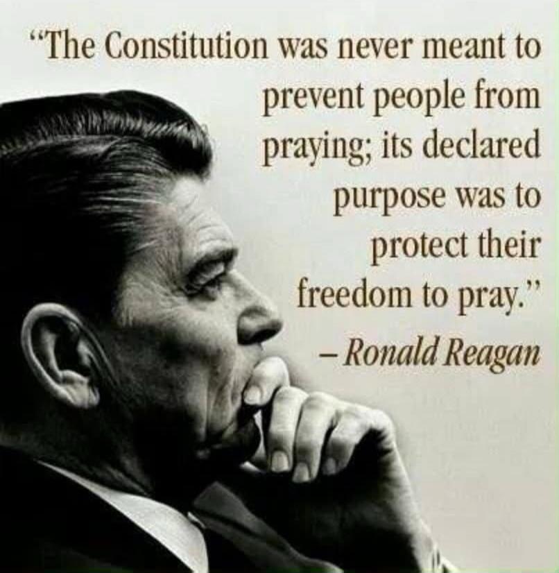 "The Constitution was never meant to prevent people from praying; its declared purpose was to protect their freedom to pray." — Ronald Reagan