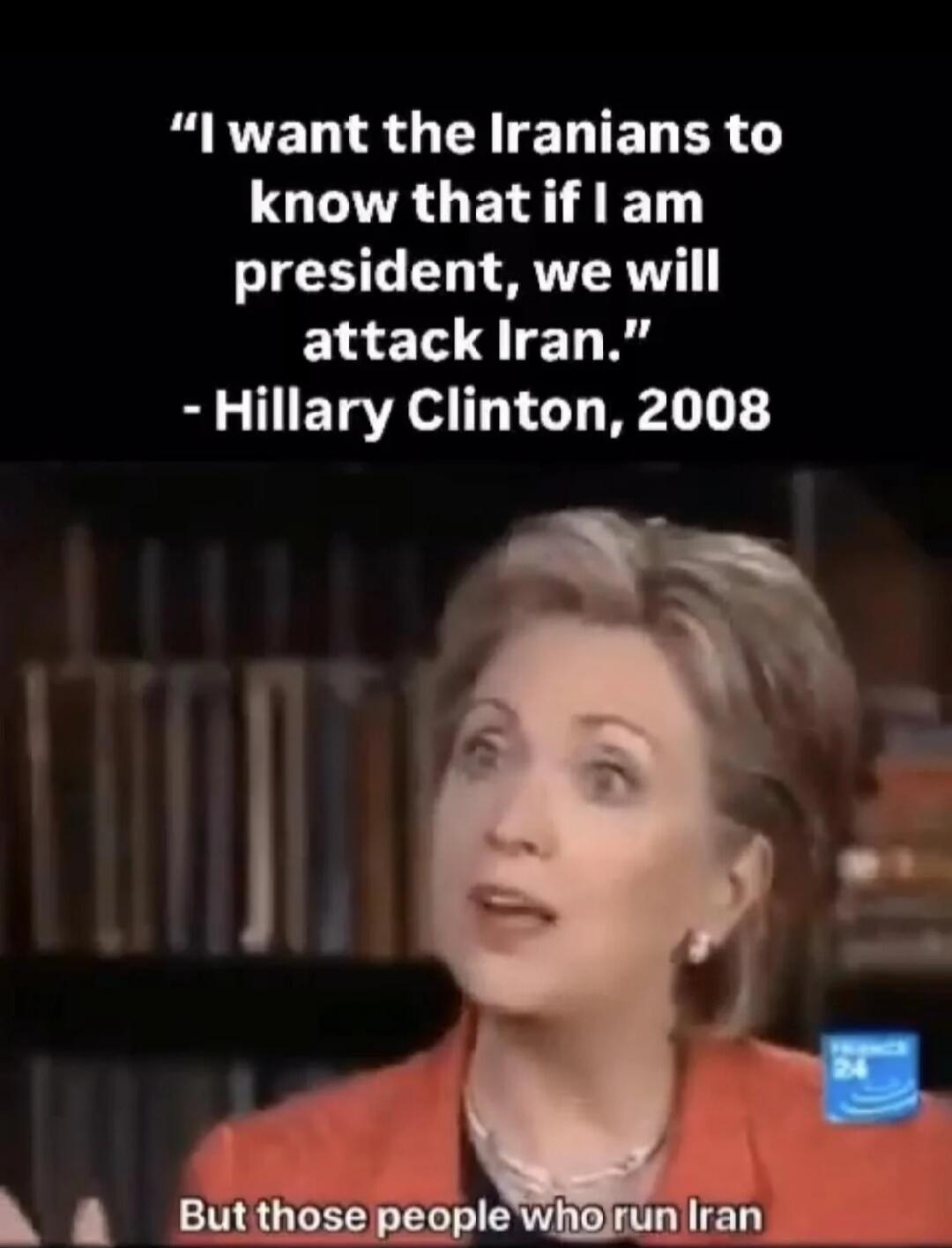 "I want the Iranians to know that if I am president, we will attack Iran." - Hillary Clinton, 2008 But those people who run Iran