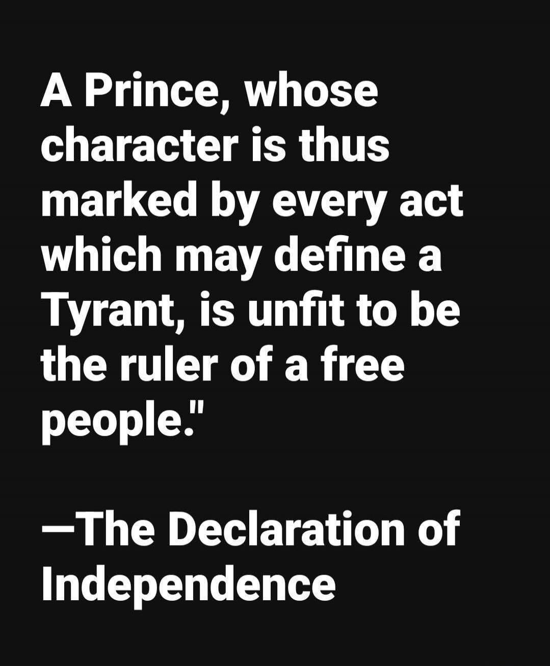 "A Prince, whose character is thus marked by every act which may define a Tyrant, is unfit to be the ruler of a free people." —The Declaration of Independence