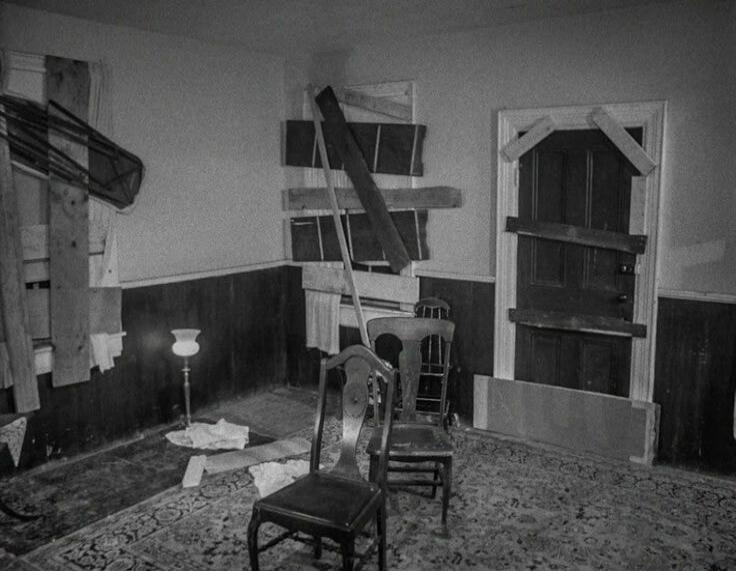 SCOOBY-DOO! AND THE NIGHT OF THE LIVING DEAD. The image depicts Scooby-Doo and Shaggy looking terrified as numerous zombie hands break through wooden barricades from both sides, trying to grab them. The scene is dark and suspenseful, typical of a horror-comedy theme.